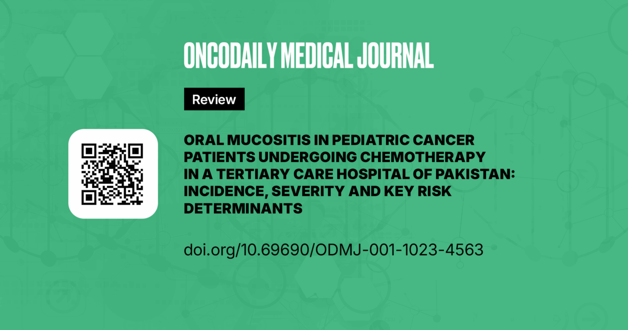 In tertiary public-sector hospitals like the Pakistan Institute of Medical Sciences (PIMS), Islamabad where a large volume of pediatric oncology patients is managed, evidence on OM remains scarce. This lack of data hinders the development of targeted, context-specific strategies for prevention, early detection, and intervention. Therefore, the objective of this study was to determine the frequency and severity of OM among pediatric cancer patients receiving chemotherapy at the Children’s Hospital, PIMS Islamabad. Furthermore, the study aimed to identify demographic, clinical, and treatment-related factors associated with OM in this population. By generating local evidence, this study seeks to inform improved clinical decision-making, enhance supportive care, and ultimately contribute to the existing body of knowledge on pediatric cancer toxicities in LMICs such as Pakistan.
