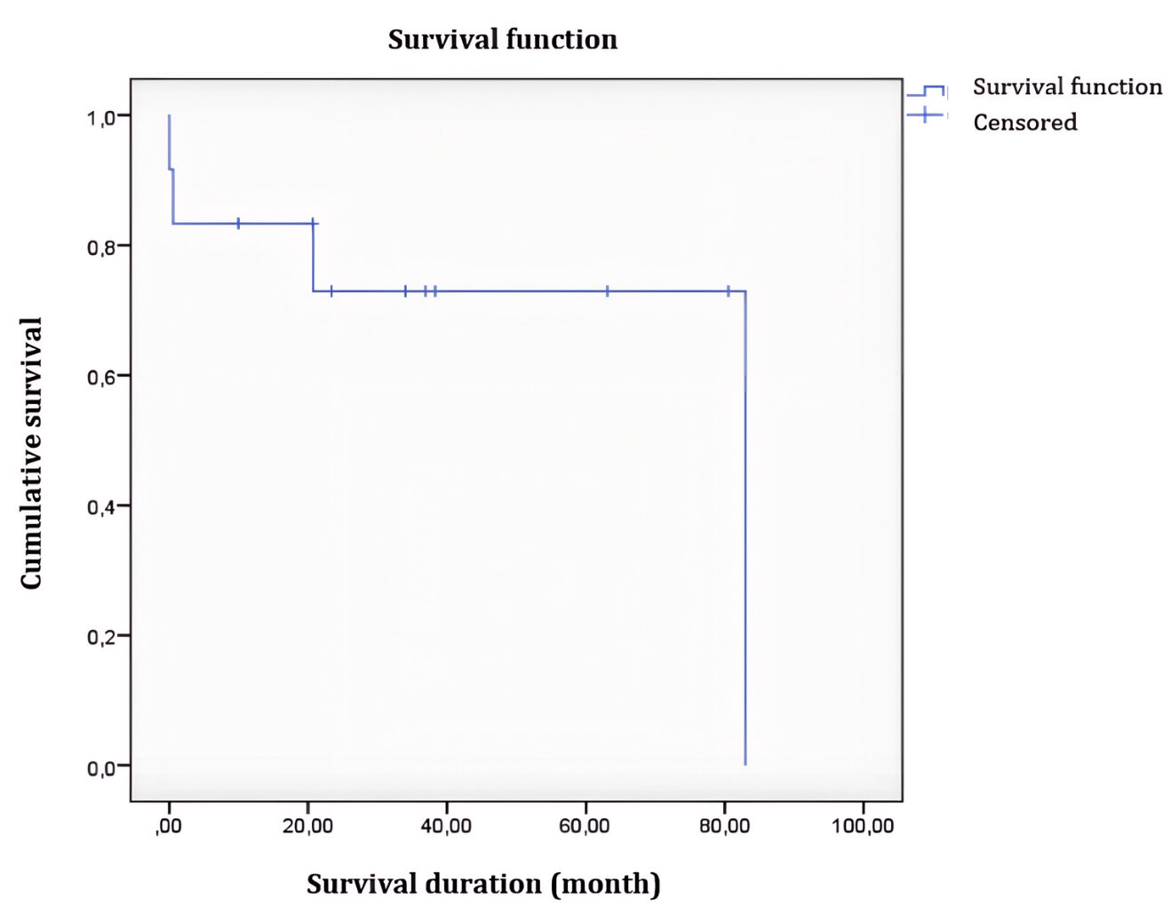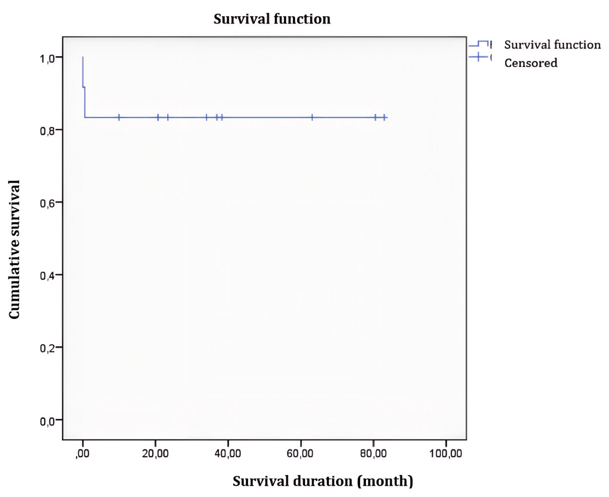Overall survival (OS) and event-free survival (EFS) in our series were 83% and 72%, respectively. These results are comparable to literature data showing OS and EFS rates of 90% and 71%7,9,10,11.