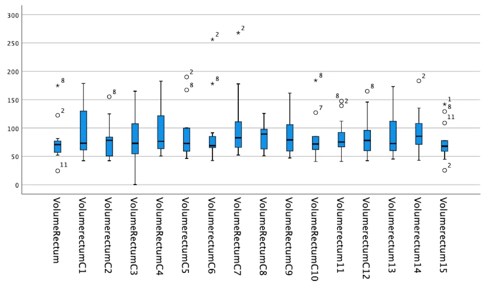 | Rectal volume variation (cc) | |||||||||||